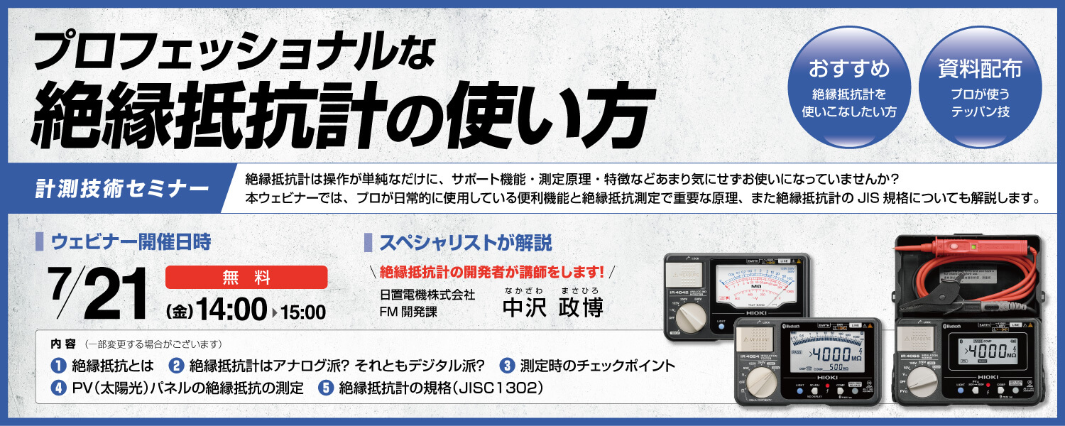 【計測技術ウェビナー7月】「プロフェッショナルな絶縁抵抗計の使い方」PV測定追加バージョン