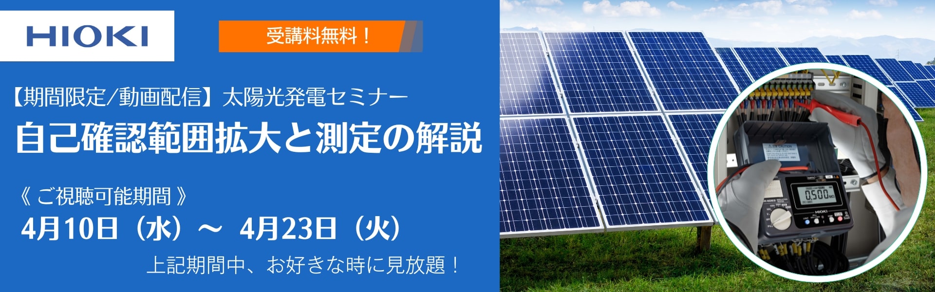 お客様からのお問合せも多いこの「使用前自己確認制度」の解説、実務、そして測定のノウハウまでをまとめた「PVセミナー」を動画配信いたします。