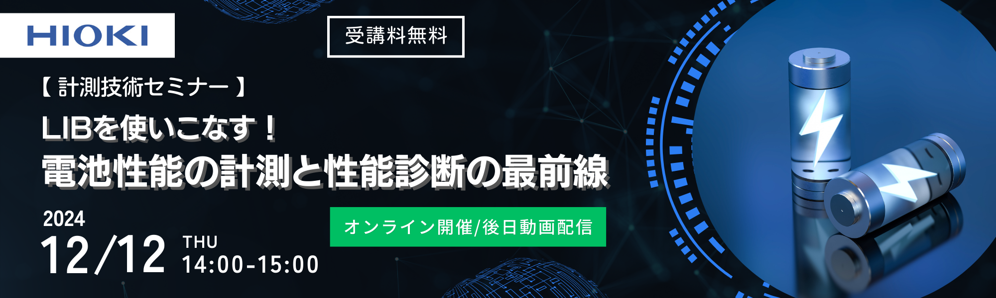 【計測技術ウェビナー】 「LIBを使いこなす!電池性能の計測と性能診断の最前線」