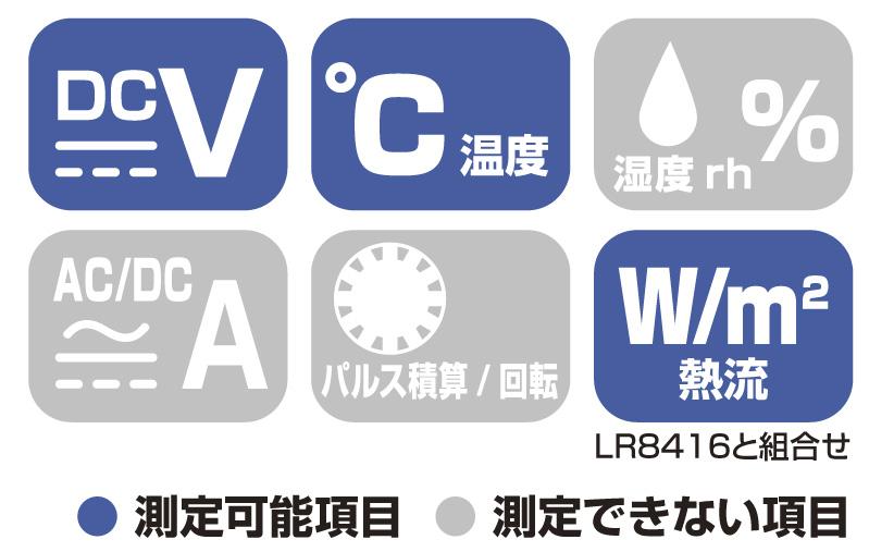 対応機器 | 【スタンドアロンで使用(手動データ回収)】 Windows PCまたはWindowsタブレット (ソフトCD-R付属) AndroidスマートフォンまたはAndroidタブレット端末 (ソフト Google playから無償ダウンロード) ※通信距離は、PCやタブレットの性能による (目安 見通し30 m) 【ユニットとして使用(リアルタイム測定)】 LR8410またはLR8416のユニットとして使用し, リアルタイムにデータ収録・表示, 最大7台まで制御可能, 通信距離:見通し30 m |