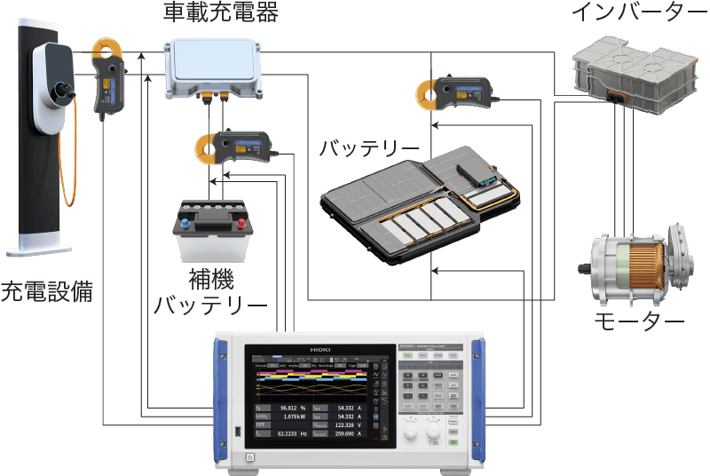 (HIOKI製のパワーアナライザーやメモリーハイコーダー接続時) - EVのインバーター評価、PV発電のPCS評価に最適