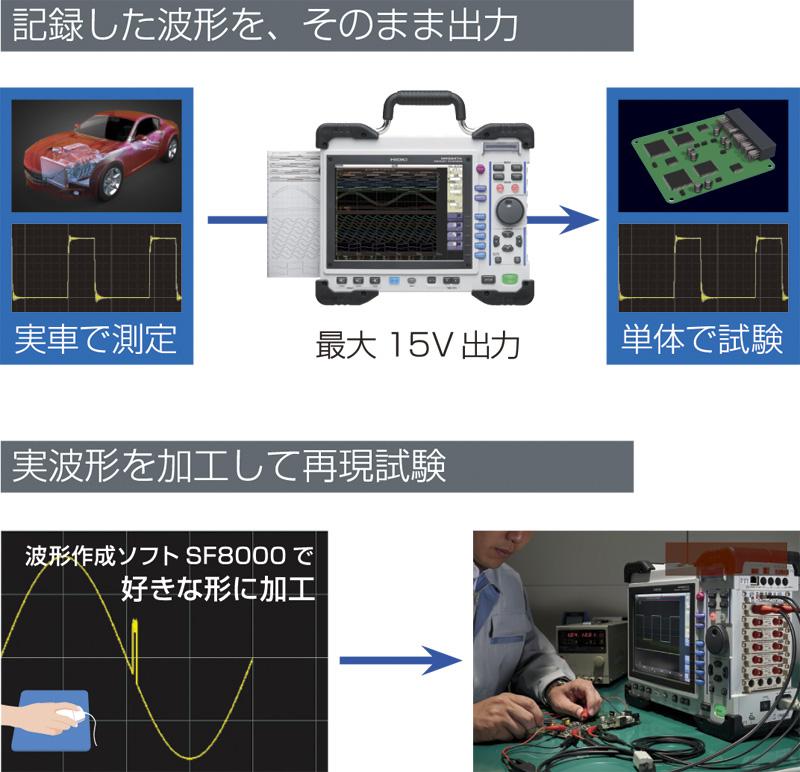 - 発生と記録の二役を一台で実現、測定した不具合波形を再現出力