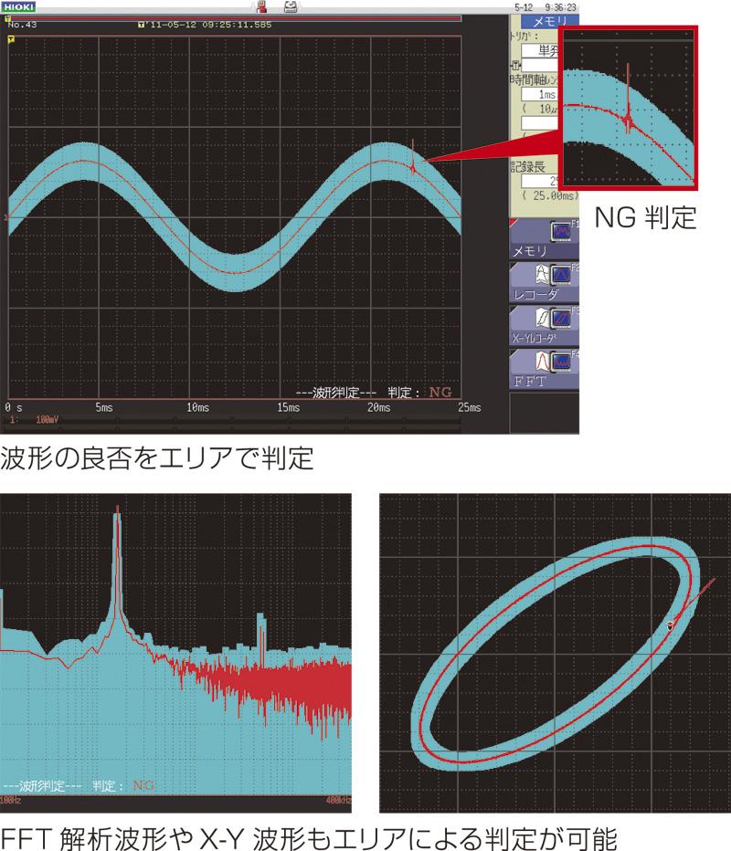 FFT解析波形やX-Y波形に対する波形判定機能も搭載しています。