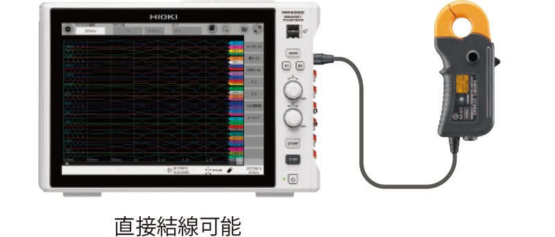 使用する電流センサを接続するだけで、どのセンサが接続されたか MR6000 や MR8740T が自動認識し、スケーリング値を反映します。