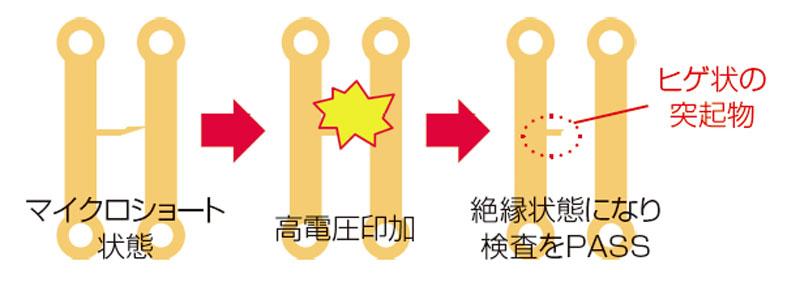 マイクロショートのような高電圧により焼損してしまうような不良を低電圧検査により確実にピックアップします。