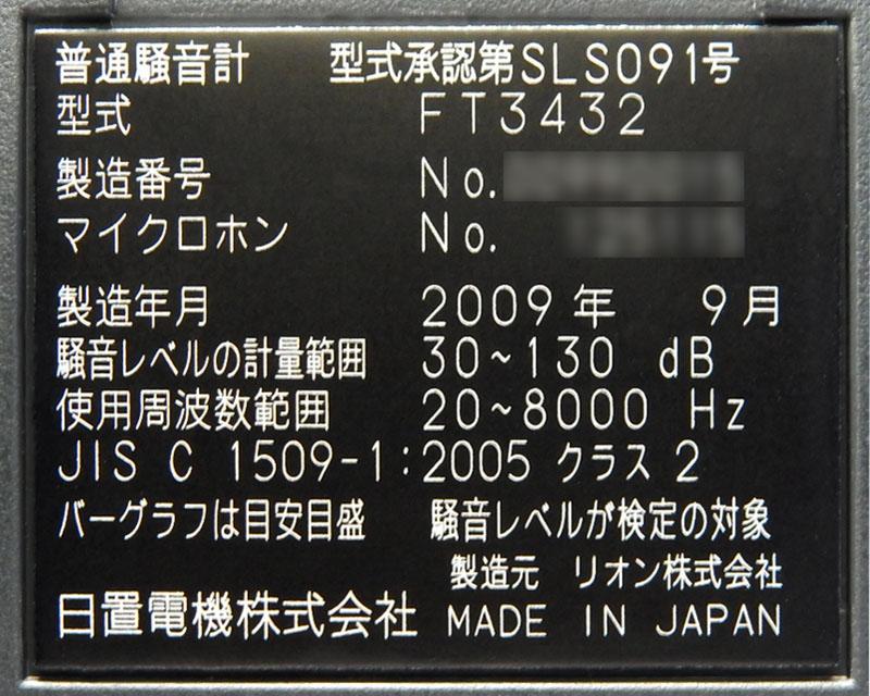 旧検定基準適合品は、FT3432裏面の銘板に型式承認番号(SLS 091号)が記載されています。
