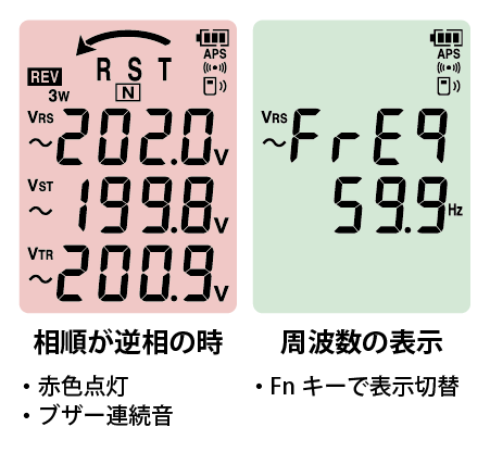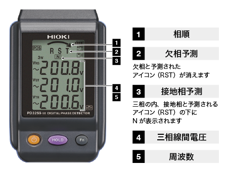 検相機能 | 正相, 逆相 (三相3線, 三相4線), 欠相予測機能, 接地相を予測 (三相3線) | |||||