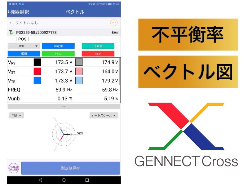 - 無償アプリGENNECT Crossで不平衡率・ベクトル図を確認