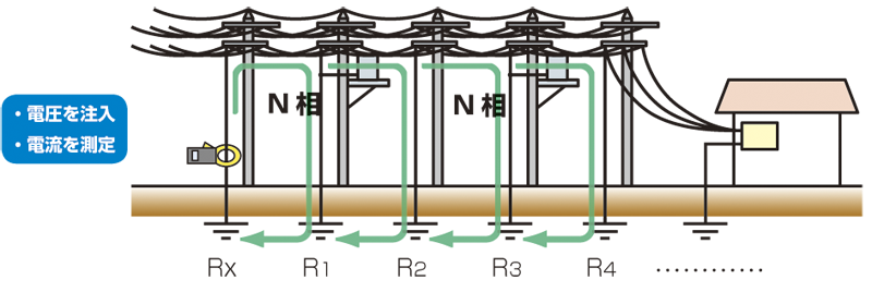 貯蔵庫、送電鉄塔などの多重接地の接地抵抗測定に