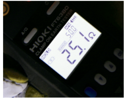 2.一定の電圧と測定された電流から、多重接地ループ全体の抵抗が以下の数式のように計算されます。