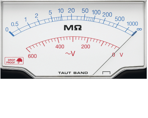 3レンジ125V・250V・500V/100MΩ 絶縁抵抗値が読取り易いシンプルスケール