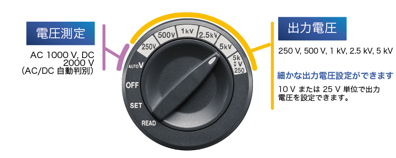 Max. 5 kVの高電圧絶縁抵抗測定
