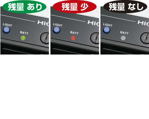 電池の残量をLEDで表示するので、常に消耗状態が確認できます。