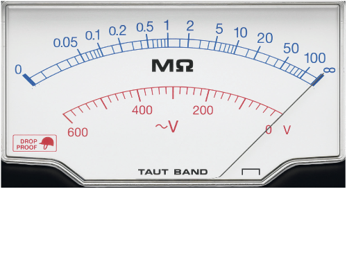 単レンジ500V/100MΩ 絶縁抵抗値が読取り易いシンプルスケール