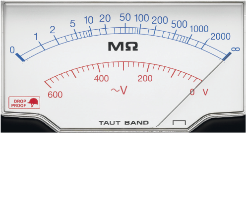 単レンジ1000V/2000MΩ 絶縁抵抗値が読取り易いシンプルスケール