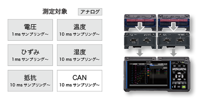 圧力センサーなど、各種センサーの出力を1 msサンプリングで測定