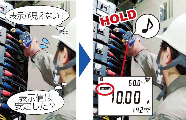 表示部が見えず、ホールドボタンを押しにくい場合に役立ちます。