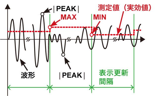 波高値(PEAK)の最大値測定も可能なため波高値レベルでも変動が確認できます。