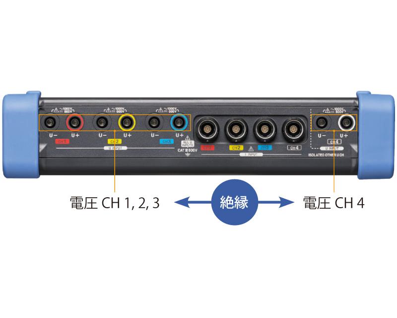 電圧CH1,2,3とCH4は絶縁されているため、2系統の電力測定、効率測定ができます。