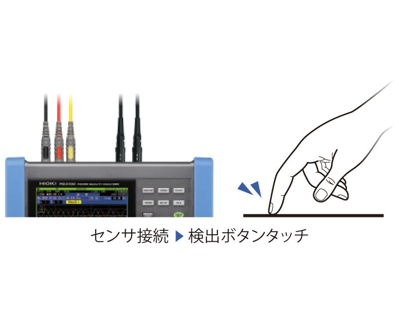 カレントセンサを接続してセンサ検出ボタンを押すだけで、センサの種類と最大電流レンジを自動で認識します。