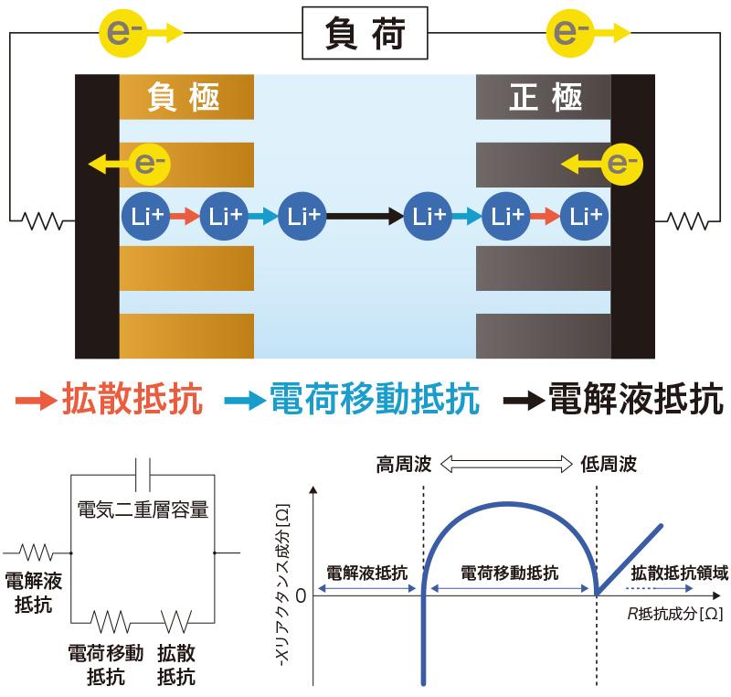 電解液抵抗、電荷移動抵抗、拡散抵抗を管理し電池セルの品質向上