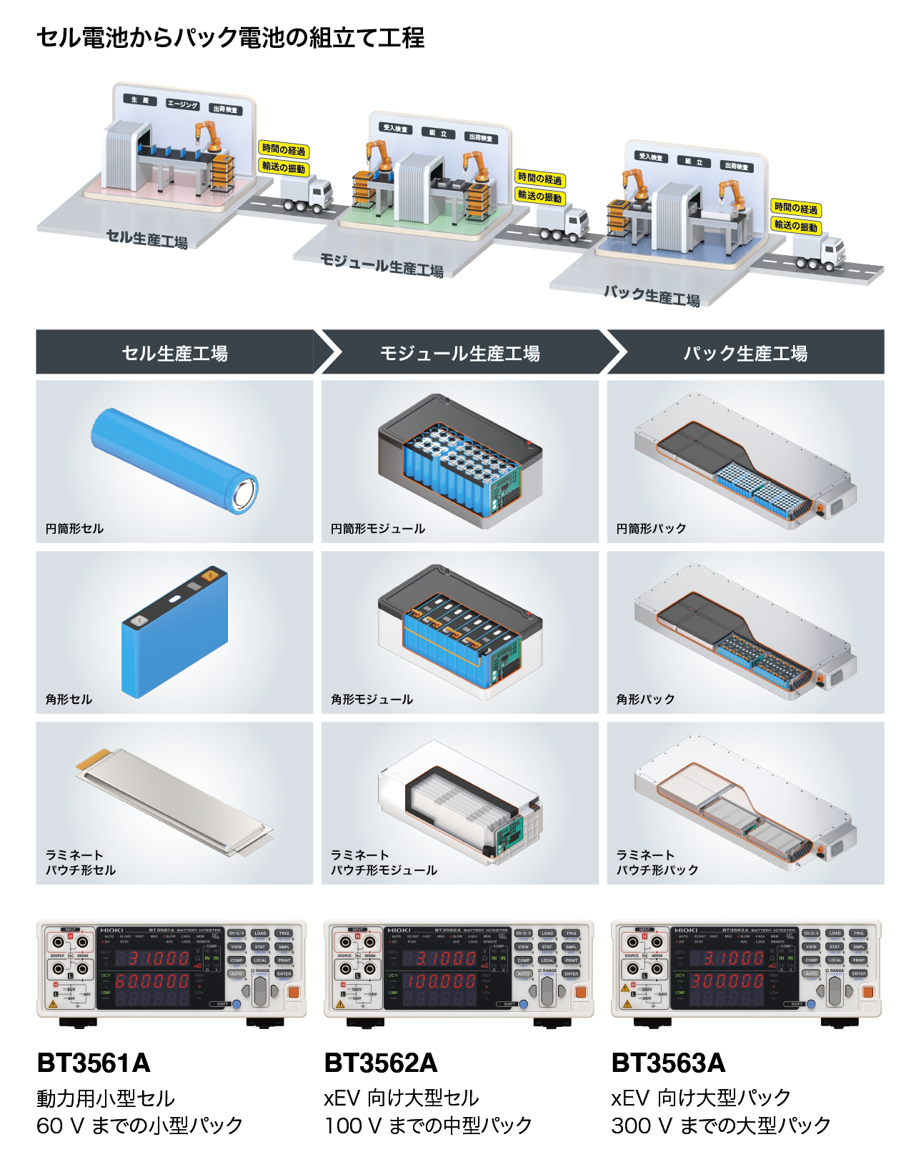 セルや電池ユニットの出荷検査および受入検査に適しています。