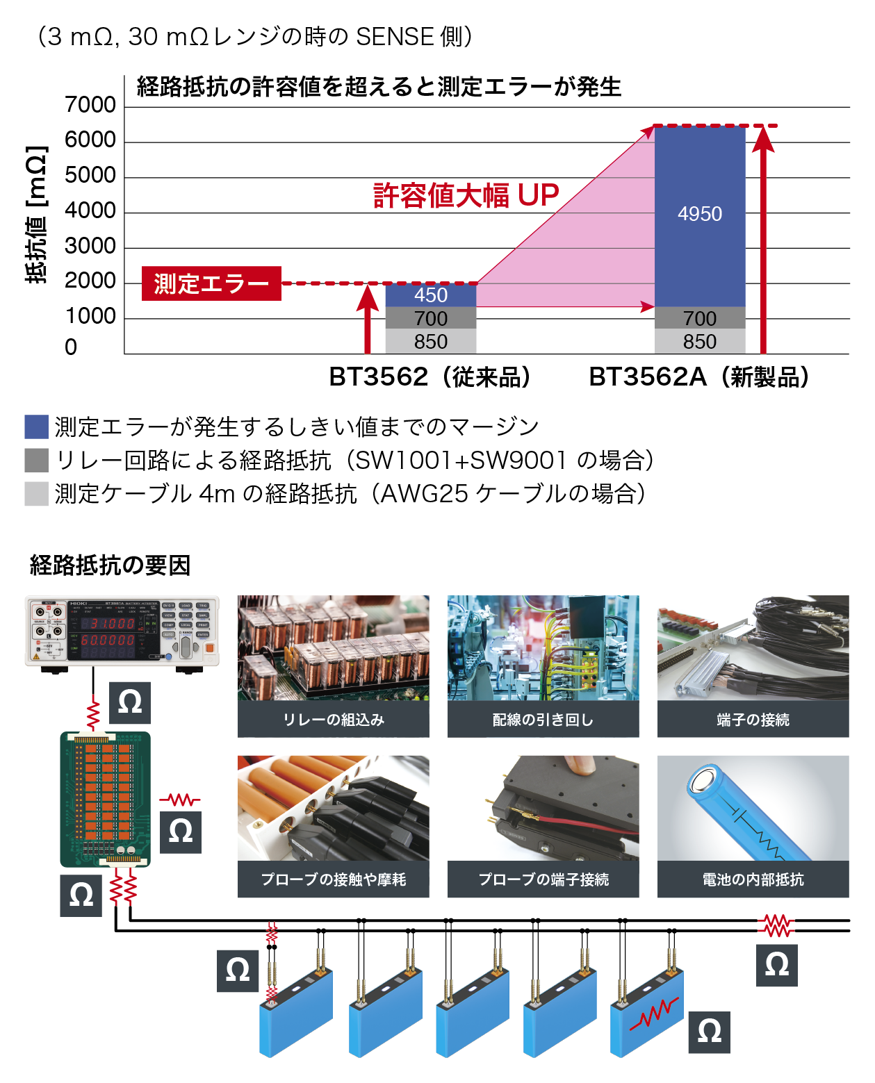 高精度な3 mΩレンジを持つため、タブ溶接部や