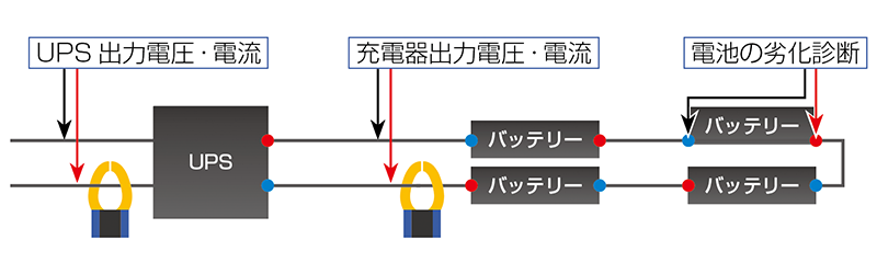 - 電池を装置に接続したまま、無停電で測定可能