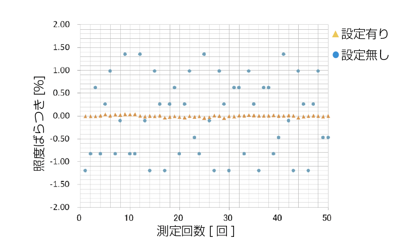 単色レーザのスペクトル幅は非常に狭いため、等色関数への近似誤差だけでなく、フィルタのばらつき(個体差)も測定値の違いとなって出てきます。