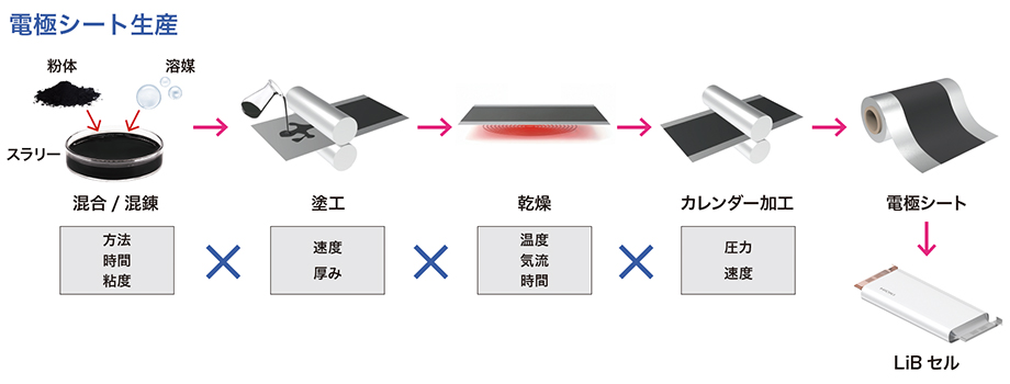粉体と溶媒から電極シートまで、多くのパラメータが相互作用しています。
