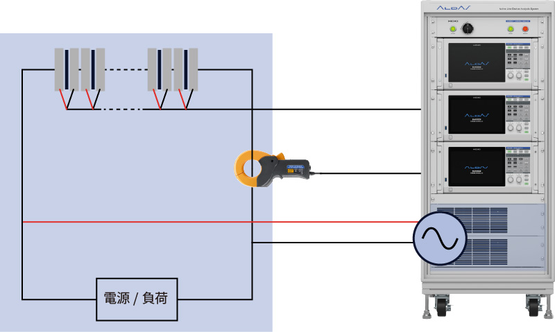 指定の直流電源や電子負荷は必要なく、既存の電解槽やFCシステムに並列接続。