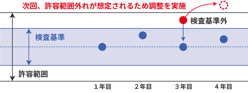 HIOKIの検査基準に入るように修正し、それ以降に許容範囲外れとなるリスクを低減させます。