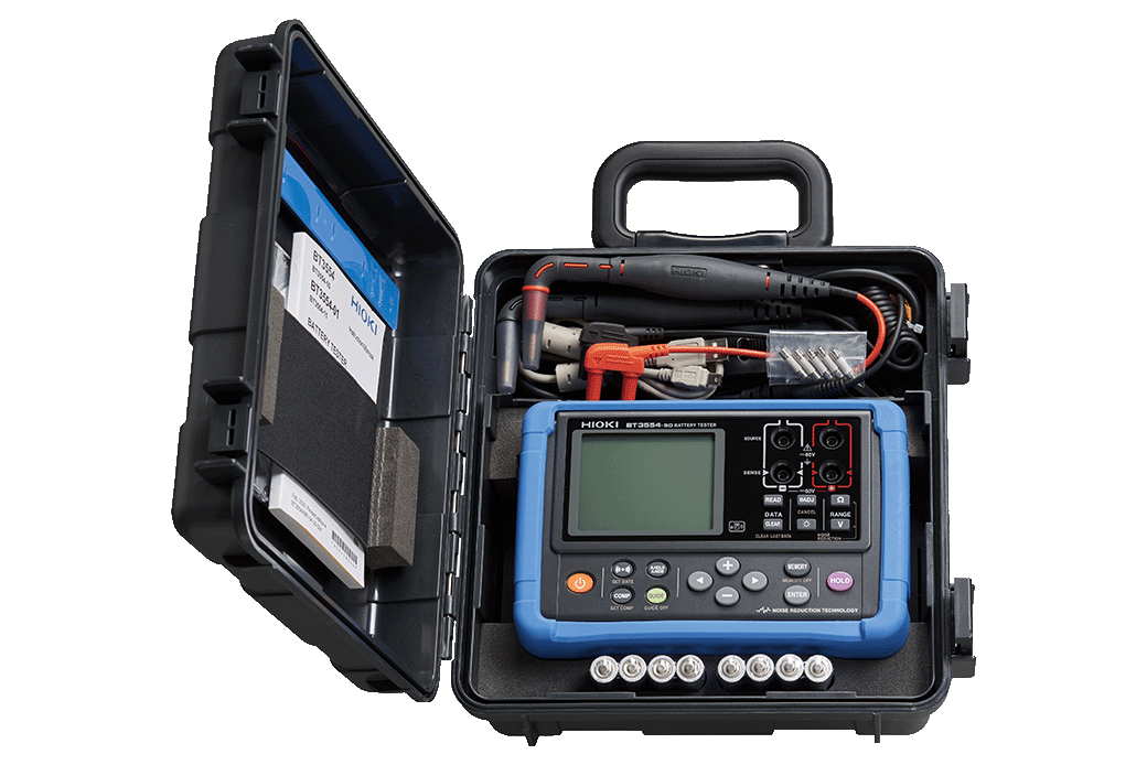 The new Battery Tester BT3554-50 sets a new standard for UPS and lead-acid battery diagnostics. Since the battery’s internal resistance and voltage are measured using the impedance method, diagnostics can be performed while the battery is connected to its host device, without taking it offline. Proprietary noise reduction technology allows more accurate measurement, even in noisy environments.