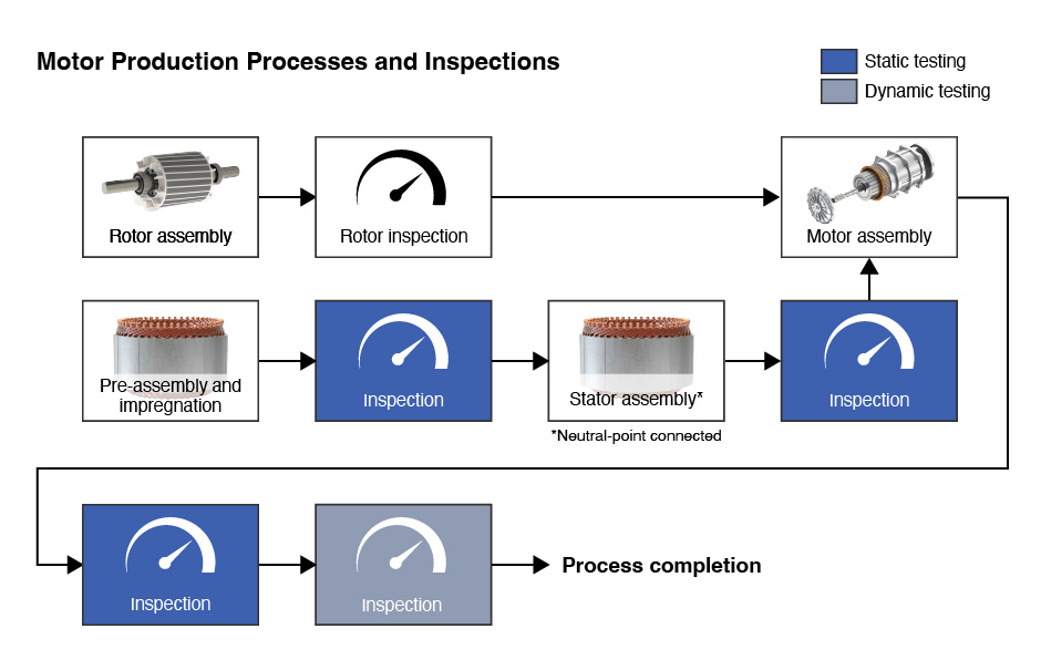 The motor manufacturing process comprises three primary stages: rotor assembly, stator assembly, and motor assembly. To ensure high-quality motor production, rigorous mechanical and electrical inspections are conducted at each stage. Following assembly, static and/or dynamic evaluations are performed to assess safety and performance. This article will focus on six crucial static electrical tests performed on the stator and finished motor to enhance overall quality.