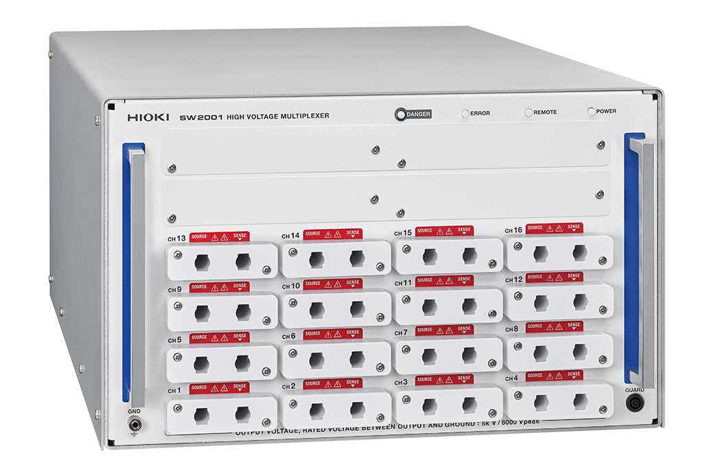 The SW2001 is a multiplexer with a stunning high and low voltage capability. It can accommodate not only high-voltage tests, such as insulation resistance measurement, hipot testing, and impulse winding testing, but also 4-terminal low-voltage measurement, such as winding resistance measurement and inductance measurement.