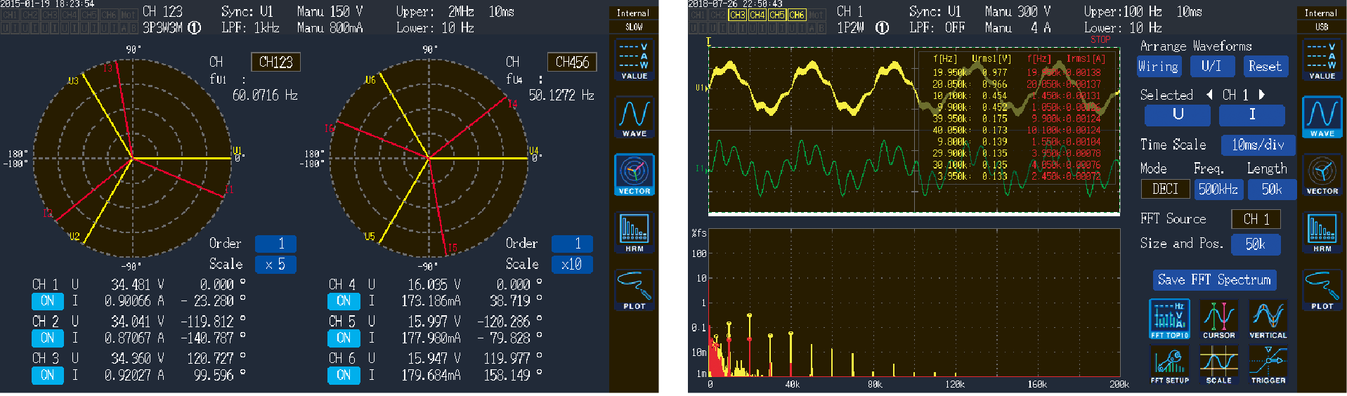 We offer a line of three power analyzers, from the flagship PW8001 to the portable PW3390. The PW8001 supports direct input of 1500 V DC or 1000 V AC.
